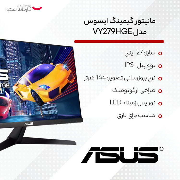 مانیتور مخصوص بازی ایسوس مدل VY279HGE سایز 27 اینچ