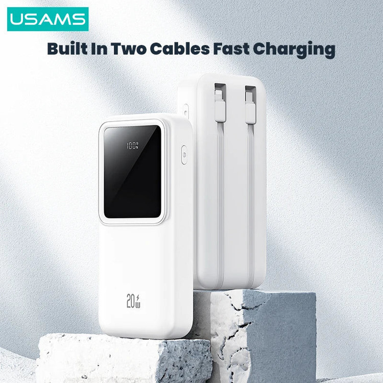 پاوربانک یوسمز مدل CD213 دارای 4 خروجی است که از یک پورت USB ، یک پورت تایپ سی (usb-c) ، یک کابل متصل لایتنینگ و یک کابل متصل تایپ سی است که می توانید چهار دستگاه را به صورت همزمان شارژ کنید. پاوربانک 30 هزار یوسمز دارای یک پورت ورودی تایپ سی بوده که می توانید پاوربانک را با قدرت 18 وات و با شدت جریان و ولتاژ 5V/3A | 9V/2 به صورت فست شارژ در مدت زمان حدودا 10 ساعت شارژ کنید . حداکثر توان خروجی های پاوربانک 30 هزار یوسمز 20 وات است که از استانداردهای فست شارژ و فناوری PD و QC بهره میبرند و میتوانند گوشی شما را با سرعت بالا شارژ کنند. از مزایای این پاوربانک داشتن 2 کابل متصل لایتنینگ و تایپ سی می باشد که شما را از همراه داشتن کابل اضافی بی نیاز می کند. پاوربانک 30000 یوسمز مدل CD213 مجهز به یک چیپست هوشمند میباشد که قادر است از باتری گوشی شما در برابر نوسانات و اتصالات کوتاه محافظت کند به گونهای که شدت جریان خروجی از پاوربانک را با شدت جریان ورودی گوشی شما یکسان میکند تا هیچ گونه آسیبی به باتری گوشی شما وارد نشود. شدت جریان و ولتاژ عبوری هر کدام از پورتهای شارژر همراه 30 هزار usams و کابل های همراه آن به شرح زیر است: درگاه USB (خروجی): 12V/1.5A | 5V/3A | 9V/2A با حداکثر توان خروجی توان خروجی 18 وات می باشد. درگاه تایپ سی (خروجی): 5V/3A | 9V/2.22A | 12V/1.67A با حداکثر توان خروجی 20 وات میباشد. کابل تایپ سی متصل : 12V/1.5A | 5V/3A | 9V/2A می باشد. کابل لایتنینگ متصل : 5V/2.4A می باشد. بر روی بدنه این پاوربانک نمایشگر دیجیتال قرار داده شده که با فشار دادن دکمه پاور، قابل مشاهده میباشد که قادر است میزان شارژ باتری پاوربانک را به شما نشان بدهد. بدنه پاوربانک یوسمز از پلاستیک باکیفیت + ABS بوده که از مقاومت بالایی در برابر ضربه و حرارت دارد. ابعاد این محصول 158×71.2x42mm بوده و وزن آن 640 گرم میباشد.