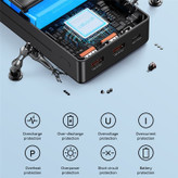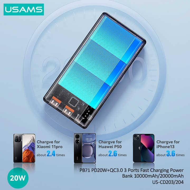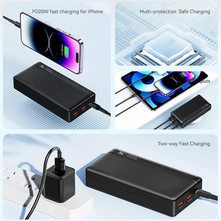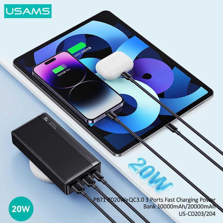 امروزه پاور بانکها به امری ضروری تبدیل شده اند. پاور بانکها برای تمام دستگاههایی که دارای پورت یو اس بی USB و Typecهستند استفاده میشوند مانند اسپیکرها ، سیستمهای GPS ، پلیرها و…. پاور بانکها خود به ابعاد و طراحی گوناگون تولید شده اند و ولتاژ برق متفاوتی دارند. این محصول، پاور بانک 20000 میلی آمپر یوسمز CD204 می باشد که توان شارژدهی با قدرت 20 وات را دارد. طراحی زیبا و چشم گیر این پاور بانک نظر زیادی را به خود جلب نموده است. جنس بدنه این لوازم جانبی کاربردی از پلاستیک با کیفیت ساخته شده است و دارای ابعاد 140x68.6x30 میلی متر است. پاوربانک 20 هزار یوسمز مدل CD204 دارای سه درگاه خروجی می باشد و قابلیت شارژ همزمان سه دستگاه را می باشد. دو درگاه خروجی USB-A با مشخصات 5V/3A 9V/2A 12V/1.5A و یک درگاه خروجی Type-C با مشخصات 5V/3A 9V/2.22A 12V/1.67A . همچنین دارای دو درگاه ورودی Type-C با مشخصات 5V/3A 9V/2A 12V/1.5A و Micro-USB با مشخصات 5V/3A 9V/2A 12V/1.5A.