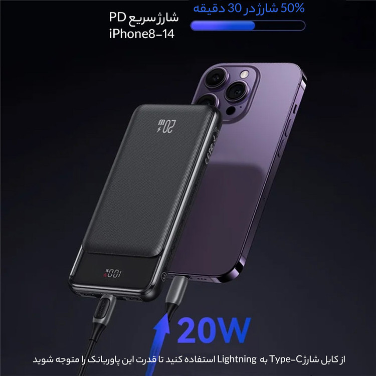 حداثر توان شارژدهی: 20 وات - پشتیبانی از فناوری PD و QC