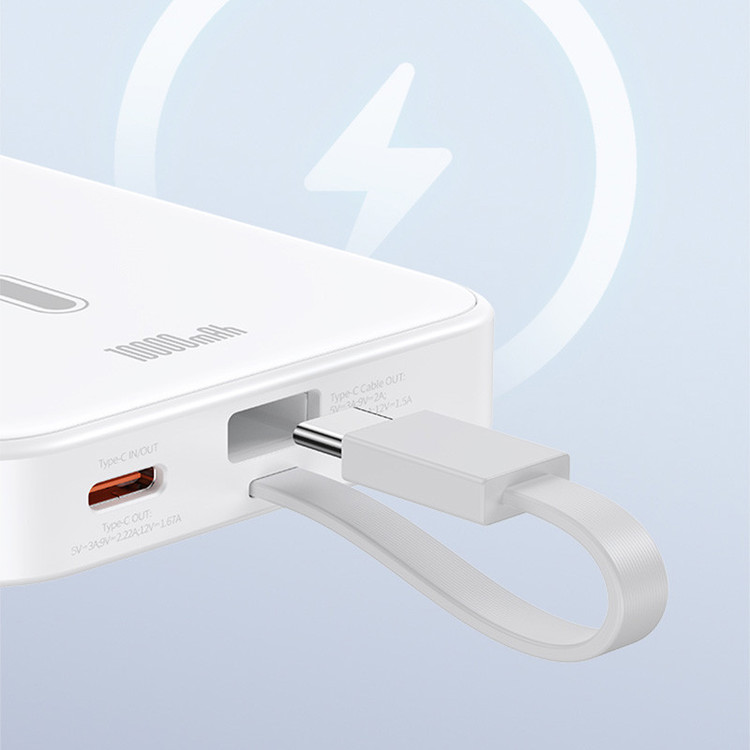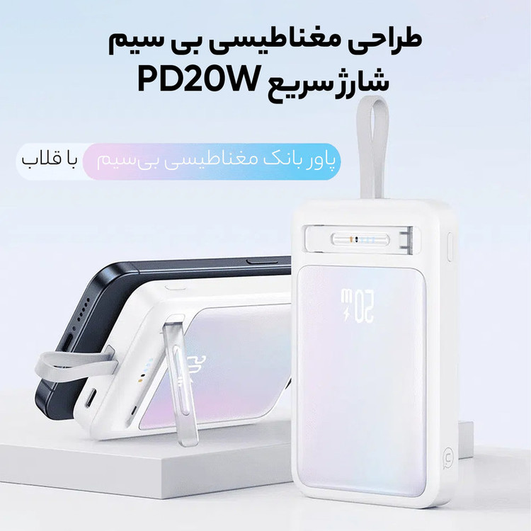 این پاوربانک درواقع یه پورت خروجی دارد (یک پورت تایپ سی - قسمت وایرلس و مگنتی پاوربانک - کابل تایپ سی متصل به آن)