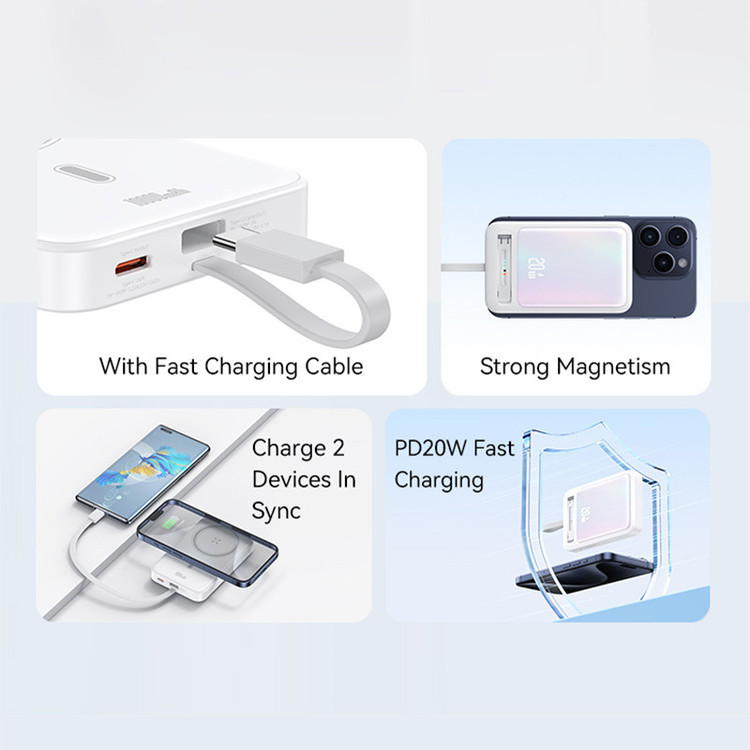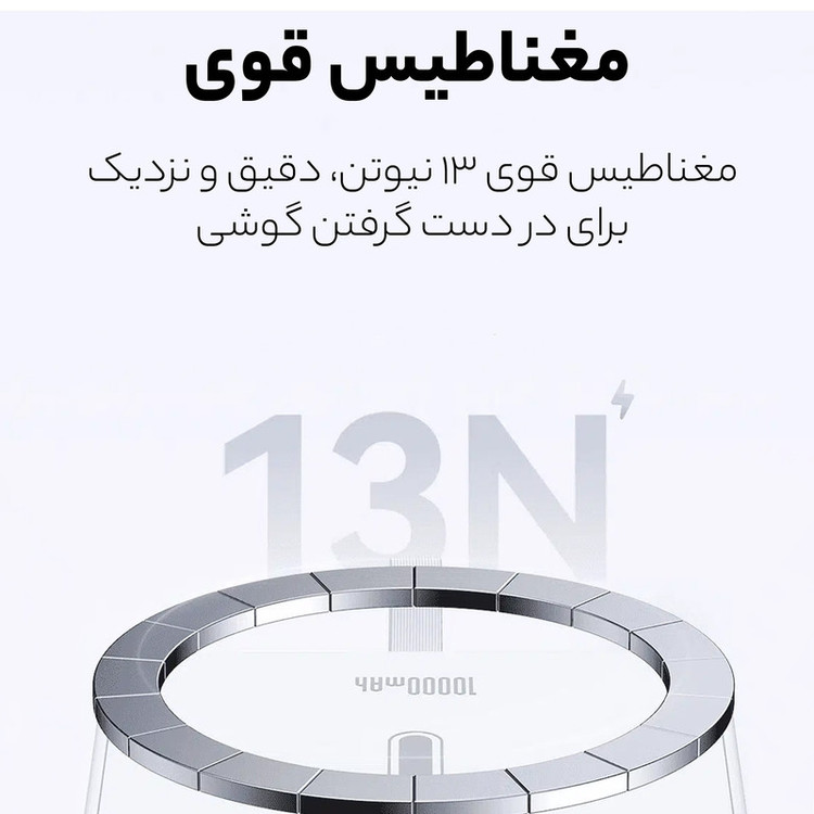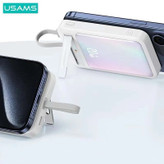 پاوربانک 10000 میلی آمپر مگنتی یوسمز مدل CD219 یک پاوربانک وایرلس 15 وات میباشد که به طور مغناطیسی به پشت آیفون های سری 12 به بعد و تمامی تلفنهای همراهی که قابلیت مغناطیسی دارند متصل میشود و به عمر باتری گوشی میافزاید. علاوه بر این هر تلفن همراهی هم که قابلیت مغناطیسی هم نداشته باشد ولی از وایرلس شارژ پشتیبانی کند هم میتواند از این این پاوربانک استفاده کند. پاوربانک وایرلس 15 وات یوسمز دارای مغناطیس بسیار قوی می باشد و به خوبی به تلفن همراه شما متصل میشود. در طراحی این پاوربانک یک قابلیت ویژه در نظر گرفته شده است که شما می توانید با باز کردن پایه کناری پاوربانک از آن به عنوان نگهدارنده موبایل هم استفاده کنید. ابعاد این پاوربانک 109x6.8x17.8 میلیمتر میباشد که بدون هیچ مشکلی به گوشی شما متصل شده، به طوری که هیچ تداخلی با دوربین گوشیهای آیفون 12 به بعد به وجود نمیآید. ظرفیت شارژر همراه یوسمز 10000 میلی آمپر میباشد.این پاوربانک علاوه بر شارژدهی به صورت وایرلس از طریق پورتهای دیگر آن میتوانید دستگاه خود را شارژ کنید. با پاوربانک 10 هزار یوسمز مدل US-CD219 می توانید از 3 طریق دستگاه های خود را شارژ کنید.اولین راه از طریق قسمت مگنتی این پاوربانک می باشد که با قدرت حداکثر 15 وات تلفن همراه شما را شارژ میکند.علاوه بر آن یک پورت تایپ سی هم بر روی آن تعبیه شده که می توانید با قدرت حداکثر 20 وات تلفن همراه خود را شارژ کنید.یکی از راه های شارژ دیگر این پاور بانک که شما را تقریبا از کابل شارژ اضافی بی نیاز میکند کابل شارژ تایپ سی متصل به آن می باشد که گوشی شما را با قدرت حداکثر 22.5 وات شارژ می کند. پاوربانک وایرلس یوسمز با وزن حدود 200 گرمی خود و با توجه به ظرفیت 10000 میلی آمپری که دارد یک پاوربانک فوق العاد خوش دست می باشد. همچنین این پاوربانک از فناوری شارژ سریع PD و QC پشتیبانی میکند.