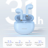 جنس بدنه هندزفری بلوتوثی یوسمز از pc است که بدنه نسبتاً محکم و با کیفیتی دارد. هندزفری یوسمز مدل YO17 دارای باتری قوی نسبت به ایربادزهای هم رده خود دارد.مدت زمان پخش موسیقی برای این هندزفری حدود 7 ساعت (در صورت قرار دادن صدا به میزان 80 درصد) و مدت مکالمه آن حدود 3 ساعت میباشد. کیس شارژ این هندزفری بیسیم دارای ظرفیت 400 میلی آمپر است که میتواند 3 الی 4 بار هندزفری شما را شارژ کند که با احتساب اینکه این هندزفری حدودا 7 ساعت شارژ نگه میدارد، شما تا 31 ساعت نیازی به شارژ مجدد این هندزفری ندارید. با توجه به اینکه از دارای میکروفون خوبی میباشد، شما میتوانید یک مکالمه با کیفیت HD داشته باشید. این هندزفری دارای اسپیکرهایی با قطر 13 میلیمتر میباشد که باعث میشود شما موسیقی را با کیفیت بالا و با بیس مناسب گوش کنید و از آن لذت ببرید. هندزفری یوسمز مدل دارای حسگر لمسی برای برقراری تماس و مدیریت موسیقی میباشد که شما میتوانید این قابلیتها را با تعداد ضربه به قسمت حسگر استفاده کنید.(برای اطلاع از قابلیتهای حسگر میتوانید به تصاویر محصول مراجعه کنید) کیس شارژ هندزفری بیسیم یوسامز مدل usams-YO17 دارای ابعاد 55.1x58x26 میلیمتر میباشد که دارای سایز نسبتا کوچک و مناسبی بوده و طراحی کوچک آن متناسب با مد روز و برای استفاده روزانه بسیار مناسب است. حساسیت هندزفری بلوتوثی یوسمز 3+105 دسی بل یا 3-105 دسی بل است. همچنین قابلیت اتصال به گوشیهای اندروید و گوشیهای آیفون را داراست و نسخه بلوتوث آن 5.3 می باشد که از جدیدترین نسخههای بلوتوث می باشد و سرعت انتقال اطلاعات نسبت به نسخههای قبلی تا چند برابر بهتر انجام میشود.