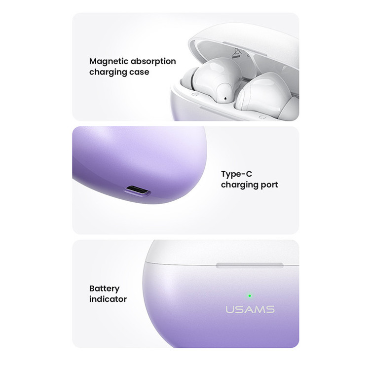 هندزفری بیسیم یوسمز مدل XD19 دارای قابلیت نویز کنسلینگ میباشد و دارای 2 میکروفونن است که برای حذف صدای محیط و دیگری برای مکالمه استفاده میشود. کیس شارژ این هندزفری دارای ظرفیت 400 میلی آمپر است که میتواند 3 الی 4 بار هندزفری شما را شارژ کند.مدت زمان پخش موسیقی برای این هندزفری حدود 6 ساعت (در صورت قرار دادن صدا به میزان 80 درصد) و مدت مکالمه آن حدود 3 ساعت میباشد. شما میتوانید تا 26 ساعت در صورت استفاده از کیس شارژ آن از این هندزفری استفاده کنید و نیازی به شارژ نداشته باشید. هندزفری usams با توجه به کیفیت خوب صدا و قابلیتهایی که دارد مناسب برای بازی،موسیقی و مکالمه میباشد. هندزفری XD19 دارای اسپیکرهایی با قطر 13 میلیمتر میباشد که باعث میشود شما موسیقی را با کیفیت بالا و با بیس مناسب گوش کنید و از آن لذت ببرید. این هندزفری دارای حسگر لمسی برای برقراری تماس و مدیریت موسیقی میباشد که شما میتوانید این قابلیتها را با تعداد ضربه به قسمت حسگر استفاده کنید.(برای اطلاع از قابلیتهای حسگر میتوانید به تصاویر محصول مراجعه کنید) کیس شارژ هندزفری آن دارای ابعاد 47.2x27x62 میلیمتر میباشد که دارای سایز نسبتا مناسبی بوده که برای استفاده روزانه بسیار مناسب است. حساسیت هندزفری یوسمز 3+108 دسی بل یا 3-108 دسی بل است. هندزفری XD19، قابلیت اتصال به گوشیهای اندروید و گوشیهای آیفون را داراست و نسخه بلوتوث آن 5.3 می باشد که از جدیدترین نسخههای بلوتوث می باشد و سرعت انتقال اطلاعات نسبت به نسخههای قبلی تا چند برابر بهتر انجام میشود.