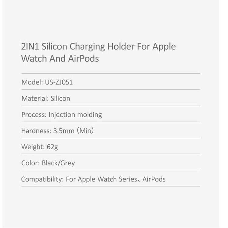 پایه نگهدارنده اپل واچ و ایرپاد یوسمز مدل us-zj051 مناسب برای تمام سری های اپل واچ اپل در سایزهای مختلف میباشد و همچنین مناسب برای ایرپاد 1/2 میباشد.