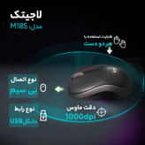 M185 یک ماوس بیسیم بسیار ظریف با طراحی زیبا است که توسط کمپانی لاجیتک که از پیشتازان صنعت لوازم جانبی کامپیوتر طراحی و تولید شده است. این ماوس بسیار جمع و جور و سبک وزن دارای یک دریافت کننده USB بسیار کوچک است که در قسمت جلوی بدنه جای میگیرد، بنابراین برای استفاده در کنار لپتاپ، برای جابجایی و همراه داشتن در هر زمان و مکانی بسیار ایدهآل است. این ماوس از یک حسگر اپتیکال با دقت 1000dpi بهره میبرد و قادر است عملکردی سریع و روان را به شما ارایه دهد. برای استفاده از این ماوس خوشدست بدون نیاز به نصب هیچگونه نرمافزاری فقط کافی است فرستنده USB آن را به لپتاپ و یا کامپیوتر خود متصل نمایید و با وجود تکنولوژی 2.4 گیگاهرتز بدون قطعی و تداخل با خاطری آسوده از آن استفاده نمایید. این ماوس انرژی خود را از یک باتری قلمی آلکالاین سایز AA تأمین میکند که قادر است تا 1 سال به آسانی به شما خدمت کند. ناگفته نماند برای ذخیره شدن بیشتر انرژی کمپانی یک دکمه برای روشن و خاموش کردن ماوس در قسمت زیرین آن طراحی کرده تا در زمان بیکاری از هدر رفتن انرژی باتری جلوگیری شود. در کل M185 یک ماوس بسیار خوشدست با ابعادی جمع و جور و وزن سبک است که از دقت بالایی نیز برخوردار بوده و برای تمامی نیازهای شما مناسب است.