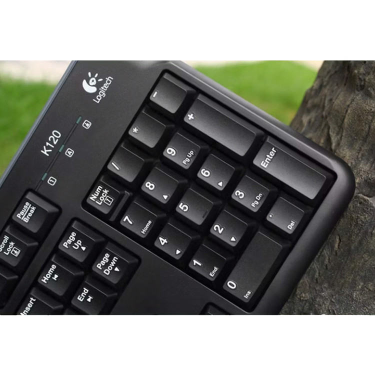 طراحی، تولید و به بازار عرضه کرده است. حروف، اعداد و علامتهایی که روی کلیدهای کیبورد K120 حک شدهاند، کاملا بزرگ و شفاف هستند تا به راحتی قابل خواندن باشند و نیازی به دقت زیاد در هنگام استفاده از آن نباشد. این کیبورد با دو نوع حروف در دسترس قرار دارد، مدل اول فقط دارای حروف انگلیسی بوده و مدل دوم علاوه بر حروف انگلیسی از حروف عربی حک شده هم بهره میبرد (همین محصول). این کیبورد باسیم، کاملا ساده و کاربردی طراحی شده و به دلیل بهرهبری از کلیدهای استاندارد و بسیار نرمی که به ندرت صدایی از خود ایجاد میکنند، قابلیت یک تایپ بسیار نرم، روان و تقریبا بیصدا را برای شما به ارمغان میآورد. یکی از ویژگیهای کیبورد K120 مقاوم بودن آن در برابر نفوذ مایعات است. البته این کیبورد و کیبوردهایی شبیه به آن که در برابر نفوذ مایعات مقاوم هستند، ضد آب نیستند و به این معنی نیست که شما میتوانید زیر آب با آن کار کنید، چون مطمئن باشید که خراب میشوند. ولی اگر در حالت کار کردن با این کیبورد به صورت تصادفی مایعی روی کیبورد ریخت، زیاد نگران نباشید زیرا پس از پشت و رو کردن کیبورد و خارج کردن مایع ریخته شده، میتوانید دوباره به کار خود ادامه دهید. این کیورد دارای پایههای خم شونده است که قابل تنظیم ارتفاع را به شما میدهند. بنابراین شما میتوانید به دو صورت کاملا خوابیده یا به صورتی که قسمت پشت آن توسط پایهها کمی بلند شده، کار کنید. لاجیتک این کیبورد را با ابعاد استاندارد و مناسبی طراحی کرده تا فضای زیادی از میز شما را اشغال نکند. نصب و استفاده از کیبورد K120 لاجیتک بسیار ساده و آسان است و نیاز به نصب هیچ درایور یا نرمافزار خاصی ندارد. برای کار کردن با آن فقط کافیست که کیبورد را به پورت USB دستگاه خود متصل نموده و شروع به استفاده نمایید. درکل میتوان گفت که K120 یک کیبورد ساده اما کاربردی با کلیدهای نرم و تقریبا بیصدا است که در مقابل نفوذ مایعات مقاوم بوده و از طریق پورت USB و به صورت باسیم به دستگاه مورد نظر شما متصل میگردد. درضمن حروف و علائمی که روی کلیدهایش حک شدهاند کاملا بزرگ و شفاف هستند. بنابراین کیبورد K120 لاجیتک برای افرادی که به یک کیبورد ساده و بادوام برای استفاده در منزل یا اداره نیاز دارند، بسیار مناسب است.
