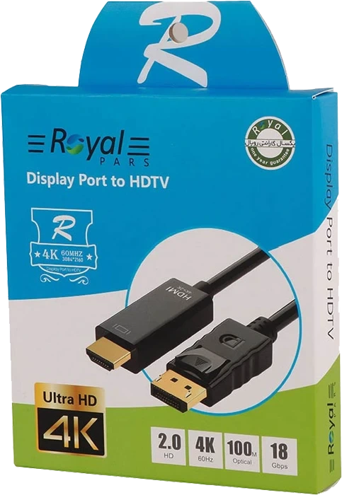کابل DISPLAY PORT به HDMI برند رویال به طول 180 سانتی متر میباشد . سازگار با انواع دستگاه های با پورت DISPLAY PORT میباشد و از رزولوشن FULL HD پشتیبانی میکند.