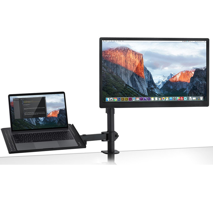 پایه رومیزی خارجی ERGO مدل WLA005 میباشد. قابلیت استفاده همزمان از مانیتور و لپتاپ و تغییر موقعیت آنها نسبت به هم را دارد.قابلیت تغییر موقعیت قرارگیری مانیتور و لپتاپ متناسب با نیازهای ارگونومیک کاربر به صورت مجزا میباشد.این پایه مناسب سایز لپ تاپ 10.1 الی 17.3 اینچ و مناسب سایز 10 . تا 30 اینچ میباشد.طراحی ارگونومیک که منجر به افزایش بهره وری و کارایی می شودتثبیت موقعیت قرارگیری مانیتورو لپتاپ بدون رانش و افتادگی است.این پایه ERGO قوی و محکم با پایداری بالا ومدیریت کابل ها با استفاده از فضای تعبیه شده داخل هولدر که میز کار خلوت و مرتبی را فراهم خواهد آورد.تغییر سریع و کارآمد موقعیت مانیتور و لپتاپ در شرایط مختلف وقابلیت نصب آسان این پایه کار آمد میباشد.