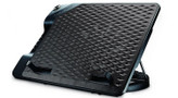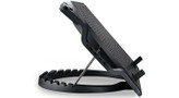 پایهی خنککنندهی «ERGOSTAND III» محصول برند «کولرمستر» (Cooler Master) است. بدنهی این خنککننده از توری فلزی و پلاستیک ساخته شده است و یک عدد فن بسیار بزرگ 230 میلیمتری در مرکز آن، خنکسازی لپتاپ را انجام میدهد. این فن، عملکرد کمصدایی دارد و صدای آن در حین کار، بههیچوجه آزارتان نخواهد داد. بخش توری روی خنککننده قابلجداشدن است و میتوانید برای تمیزکاری دورهای، آن را از جای خود خارج کنید. بدنهی خنککننده طوری طراحی شده که امکان بالاآوردن لپتاپ و زاویهدادن به آن فراهم باشد. این کار با استفاده از دندههایی که در تکهی پایینی بدنه ایجاد شده، امکانپذیر است. با استفاده از 6 دندهای که در NOTEPAL ERGOSTAND LITE وجود دارد، میتوان 6 زاویهی متفاوت به خنککننده داد. سرعت گردش فن در این محصول متغیر است و میتوان سرعت گردش فن را از 500 تا 800 دور بر دقیقه تنظیم کرد. این کار با استفاده از پیچ گردی که از جنس آلومینیوم ساخته شده، بسیار جذاب و لذتبخش خواهد بود. برق موردنیاز فن برای چرخش توسط یکی از پورتهای USB لپتاپ تامین میشود. روی بدنهی این خنککننده شاهد 4 عدد پورتUSB هستیم که کارکردی مشابه هاب USB دارند و اجازه میدهند لوازم جانبی خود را با استفاده از آنها به کامپیوتر وصل کنید. لپتاپهای تا 17 اینچ در ERGOSTAND III قابلاستفاده هستند و دو گیرهی پلاستیکی، امنیت قرارگیری لپتاپ در زاویههای نزدیک به عمود را تضمین میکنند.