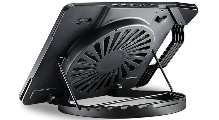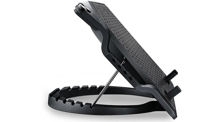 پایهی خنککنندهی «ERGOSTAND III» محصول برند «کولرمستر» (Cooler Master) است. بدنهی این خنککننده از توری فلزی و پلاستیک ساخته شده است و یک عدد فن بسیار بزرگ 230 میلیمتری در مرکز آن، خنکسازی لپتاپ را انجام میدهد. این فن، عملکرد کمصدایی دارد و صدای آن در حین کار، بههیچوجه آزارتان نخواهد داد. بخش توری روی خنککننده قابلجداشدن است و میتوانید برای تمیزکاری دورهای، آن را از جای خود خارج کنید. بدنهی خنککننده طوری طراحی شده که امکان بالاآوردن لپتاپ و زاویهدادن به آن فراهم باشد. این کار با استفاده از دندههایی که در تکهی پایینی بدنه ایجاد شده، امکانپذیر است. با استفاده از 6 دندهای که در NOTEPAL ERGOSTAND LITE وجود دارد، میتوان 6 زاویهی متفاوت به خنککننده داد. سرعت گردش فن در این محصول متغیر است و میتوان سرعت گردش فن را از 500 تا 800 دور بر دقیقه تنظیم کرد. این کار با استفاده از پیچ گردی که از جنس آلومینیوم ساخته شده، بسیار جذاب و لذتبخش خواهد بود. برق موردنیاز فن برای چرخش توسط یکی از پورتهای USB لپتاپ تامین میشود. روی بدنهی این خنککننده شاهد 4 عدد پورتUSB هستیم که کارکردی مشابه هاب USB دارند و اجازه میدهند لوازم جانبی خود را با استفاده از آنها به کامپیوتر وصل کنید. لپتاپهای تا 17 اینچ در ERGOSTAND III قابلاستفاده هستند و دو گیرهی پلاستیکی، امنیت قرارگیری لپتاپ در زاویههای نزدیک به عمود را تضمین میکنند.