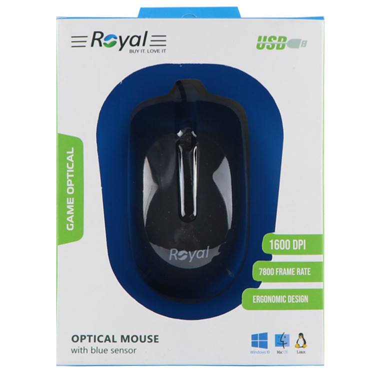 ماوس «R-M261» محصولی از شرکت «رویال» است که از طریق USB به کامپیوتر متصل میشود. اتصال از طریق USB باعث شده که این ماوس را به راحتی بتوان به هرکامپیوتری متصل کرد. ماوس R-M261 شرکت رویال از سه کلید برای انجام فعالیتهای کامپیوتری تشکیل شده است. کلیدهای این ماوس در برابر ضربات بسیار مقاوم هستند. طراحی ماوس R-M261 به گونهای است که هم کاربران راست دست و هم کاربران چپ دست میتوانند از آن بهره ببرند. جنس بدنهی این ماوس از پلاستیک با کیفیت است.