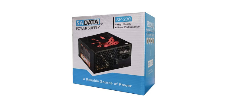 پاور SP-230 شرکت سادیتا از نوع غیر ماژولار با یک عدد ریل 12 ولت و بر اساس فرم فاکتور ATX طراحی شده است که برای انواع سیستم ها با مادربردهای اندازه استاندارد و ابعاد بزرگ مناسب می باشد. این منبع تغذیه با بهره بردن از متریال و قطعات با کیفیت و استانداردهای حفاظتی OVP ،OPP و UVP، امنیت قطعات داخلی سیستم را تامین می کند. پاور کامپیوتر SADATA با توان خروجی 230 وات در محدوده فرکانس ورودی 50 تا 60 هرتز و حداکثر ولتاژ ورودی 245 ولت فعالیت و برق رسانی به قطعات مختلف را انجام می دهد. اتصالات پاور سادیتا شامل یک عدد کانکتور 4 پین IDE، سه عدد کانکتور 15 پین SATA، یک عدد کانکتور 4 پین ATX و کانکتور 4+20 پین مادربرد می باشد. یک فن 120 میلی متری نیز بر روی این منبع تغذیه تعبیه شده که فرآیند خنک سازی و متعادل سازی دما را به خوبی اجرا نموده و از آسیب ناشی از فشار بار اضافی و گرمای بیش از حد به قطعات داخلی جلوگیری می کند.