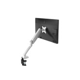 قرار گرفتن مانیتور در موقعیت ارگونومیک باعث کاهش مشکلات ناشی از نشستن های نامناسب و طولانی در محیط کار می شود. همچنین تنظیمات متعددی که این محصول برای زوایا و جهت مانیتور ارائه می دهد قابلیت هایی جدید را برای بالا بردن کارایی و افزودن تحرک کافی در محیط کار ارائه می کند. این پایه با بهره گیری از یک جک گازی و لولاهای کارآمد امکان تنظیم مانیتور در زاویه دلخواه را به سادگی و نرمی فراهم می کند. این پایه امکان گردش 360 درجه صفحه مانیتور، چرخش 15 درجه ای به سمت پایین و 85 درجه ای به سمت بالا، تنظیم فاصله دید، و گردش صفحه نمایش بصورت عمودی و افقی جهت رسیدن به بهینه ترین شرایط را فراهم می کند. چگونگی نصب این پایه و همچنین قابلیت تنظیمات متفاوت آن، فضای میز کار را بصورت قابل توجهی کاراتر خواهد کرد. همچنین مسیرهای تعبیه شده برای عبور کابل ها باعث کاهش آشفتگی همیشگی پشت مانیتور خواهد شد. این پایه به دو صورت قابل نصب است، اتصال با گیره به کناره میز و یا نصب در وسط میز. رابط نصب این پایه بر روی مانیتور با دو سایز متداول 75x75 و 100x100 (میلی متر) قابلیت اتصال مانیتورهایی با سایز 17 تا 27 اینچ با وزن 2 تا 9 کیلوگرم را به آسانی فراهم میکند. استفاده از ABS و آلومینیوم گرید هواپیمایی باعث شده است که این محصول با کیفیت ظاهری بی نظیر در بازار عرضه شود . بکار بردن لولاهای با کیفیت در ساخت این بازوی ال سی دی نیز نه تنها باعث تنظیم پذیری مناسب آن شده بلکه طول عمر مفید این محصول را بالا برده است. همچنین پیچی برای تنظیم فشار جک گازی در این بازو تعبیه شده تا امکان تنظیم پذیری برای مانیتورها در سایزها و وزن های مختلف فراهم باشد.