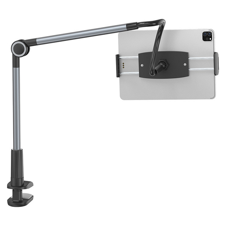 هولدر Otaku Life Rotary adjustment lazy محصولی از کمپانی Baseus بوده که توسط گیره قرار گرفته در قسمت انتهایی آن بر روی لبه میز متصل می شود و قادر است گوشی ها و تبلت هایی با ابعاد 4.7 تا 12.9 اینچ را به راحتی نگه دارد. این محصول دارای دو پایه است که با یک قطعه مفصل مانند به یکدیگر متصل شده اند و به راحتی می توان زاویه بین آن ها را تغییر داد؛ همچنین در انتهای یکی از پایه ها، قسمتی قرار گرفته که به راحتی به میز متصل می شود و با یک گیره پیچی به آن محکم بسته می شود، ضخامت میز و صفحه ای که بین این دو گیره نگهدارنده قرار می گیرد، تا 90 میلی متر خواهد بود. در انتهای پایه دیگر یک بازوی خرطومی قرار گرفته که به راحتی می توان به آن فرم و حالت داد تا در بهترین حالت خود قرار گیرد. بازوهای این محصول دارای قابلیت چرخش هستند و این امر آزادی عمل کاربر را بسیار افزایش داده است. جنس بدنه این محصول ترکیبی از فلز آلومینیوم و پلاستیک بوده که مقاومت آن را در برابر ضربه و فشار تا حد بالایی افزایش داده است. گیره سری هولدر Otaku Life Rotary adjustment lazy دارای یک بازو بوده که می توانید با باز کردن آن به راحتی گوشی خود را داخلش قرار دهید. بر روی لبه های این هولدر بالشتک های سیلیکونی قرار دارد که از ایجاد خط و خش بر روی بدنه گوشی جلوگیری می کند. گیره قرار گرفته در قسمت انتهای این هولدر قادر است تا 90 میلی متر باز شود تا بتوانید آن را بر روی لبه هر میزی متصل کرده و هیچ گونه محدودیتی برای کاربر به وجود نمی آورد. همان طور که گفته شد، قسمت بالایی این هولدر به صورت انعطاف پذیر طراحی شده تا تنظیم آن برای شما بسیار راحت باشد و نیاز به باز کردن گیره های محصول نداشته باشید. هولدر Baseus Otaku Life Rotary به شما کمک می کند تا بدون دخالت دست به تماشای فیلم، بر قراری تماس تصویری و ... بپردازید.